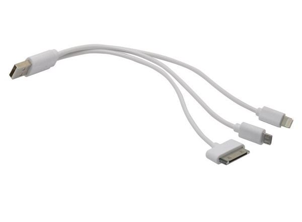 Universalkabel mit 3 Steckern für Android und Apple® Geräte. Dieses Zubehör ist nur in Verbindung mit einer unserer Powerbanks (Ersatzbatterie) erhältlich. Apple® ist ein eingetragenes Warenzeichen der Firma Apple inc.