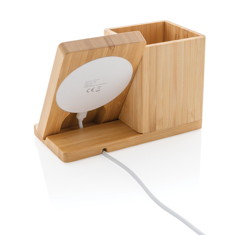 Calgary 5W Wireless Charger und Stiftehalter aus Bambus