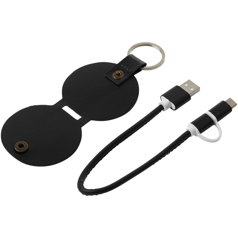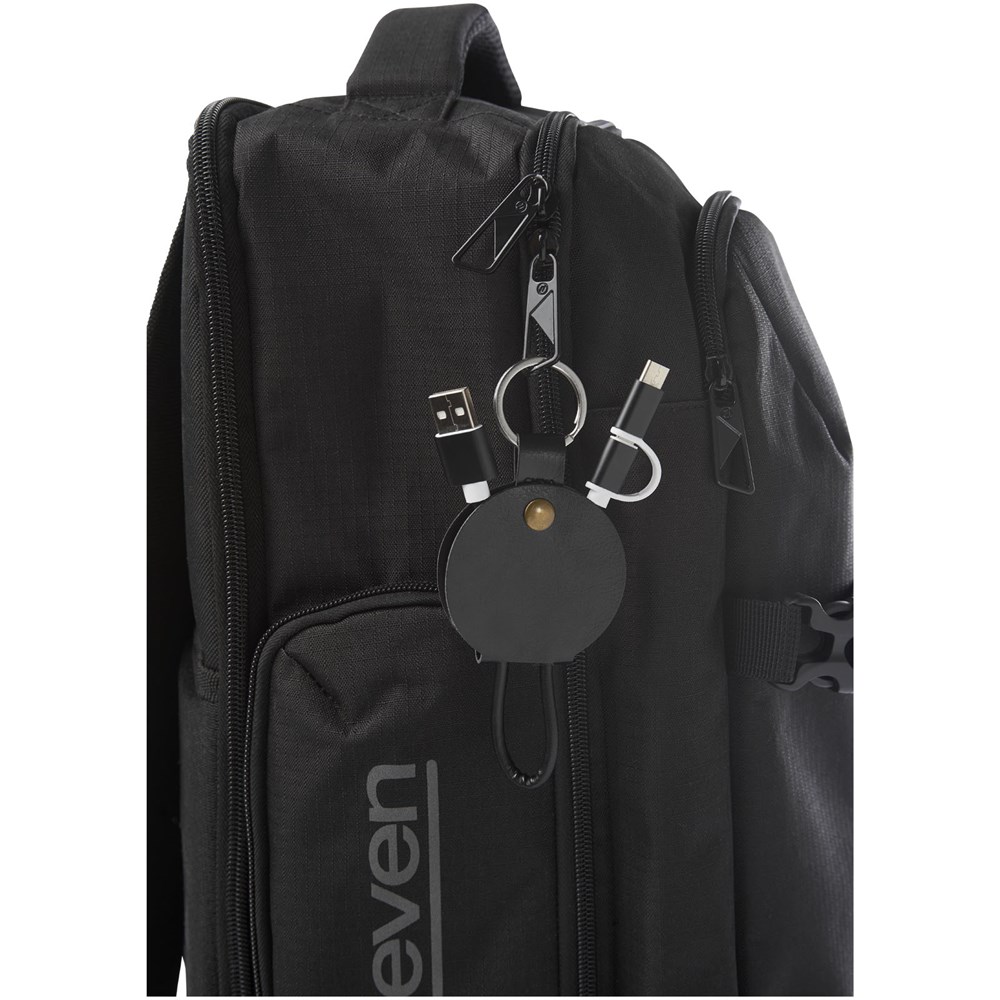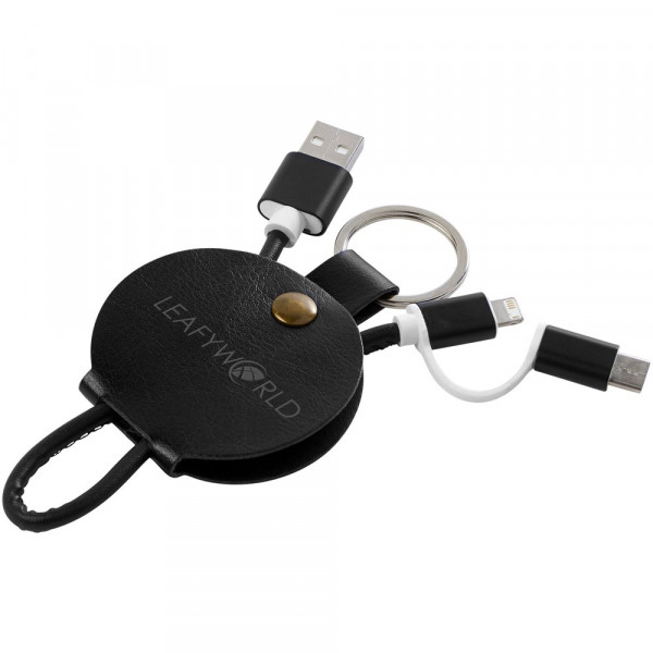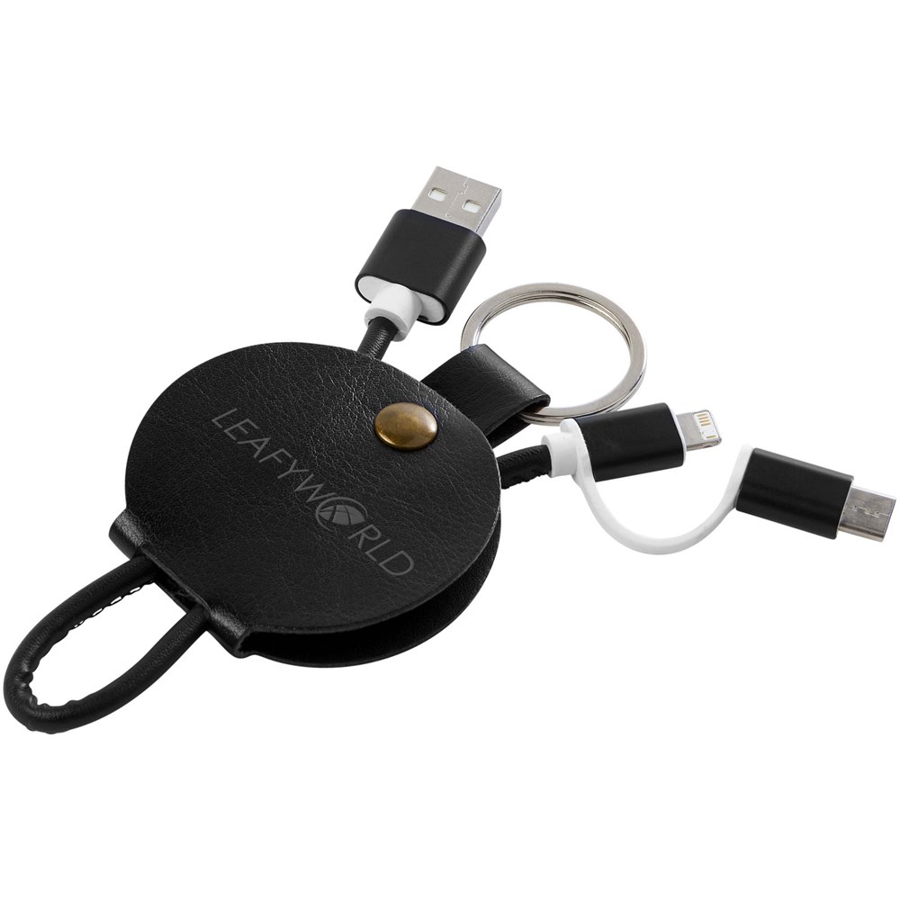 Gist 3-in-1 Ladekabel. Das Gist 3-in-1-Kabel wird durch eine weiche Hülle geschützt und verfügt über einen USB-Typ-C-Anschluss und einen dual kompatiblen 2-in-1-Anschluss für Apple iOS- und Android-Geräte. Mit dem Ring kann das Ladegerät am Schlüsselbund oder an einer Tasche befestigt werden. Kabellänge: 20 cm. PU.