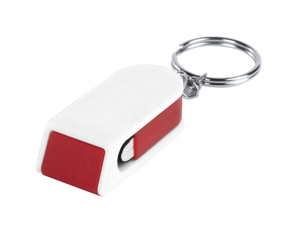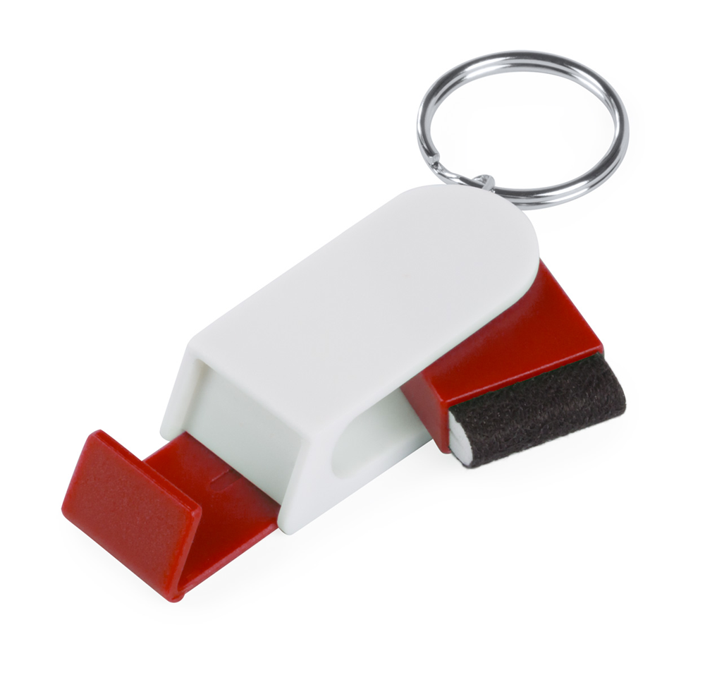 Handy Halter aus Kunststoff mit Schlüsselanhänger und Bildschirmreiniger.