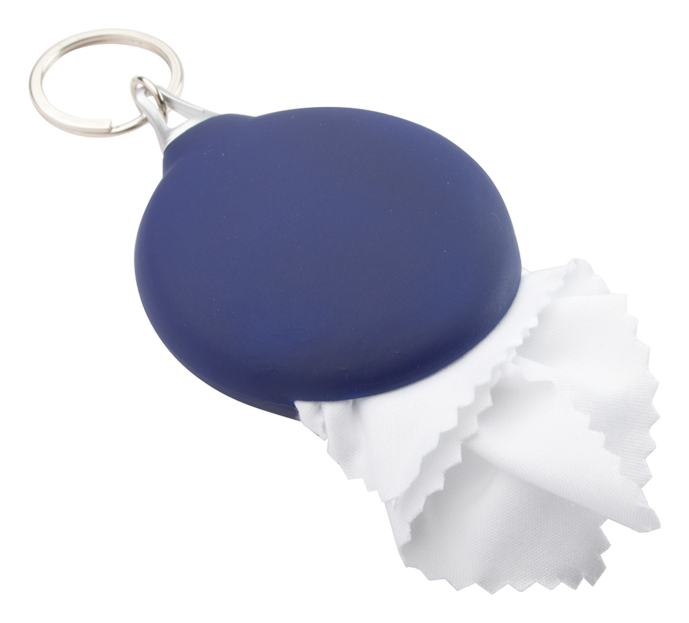 Mikrofaser-Reinigungstuch (13 x 18 cm), für z. B. Brillen, in einem weichem Kunststoffetui mit Schlüsselring.