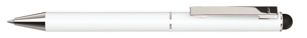 Metall-Drehkugelschreiber mit matter Oberfläche, Metallclip, Metallspitze und gummiertem Schaftende für die Touchscreensteuerung.