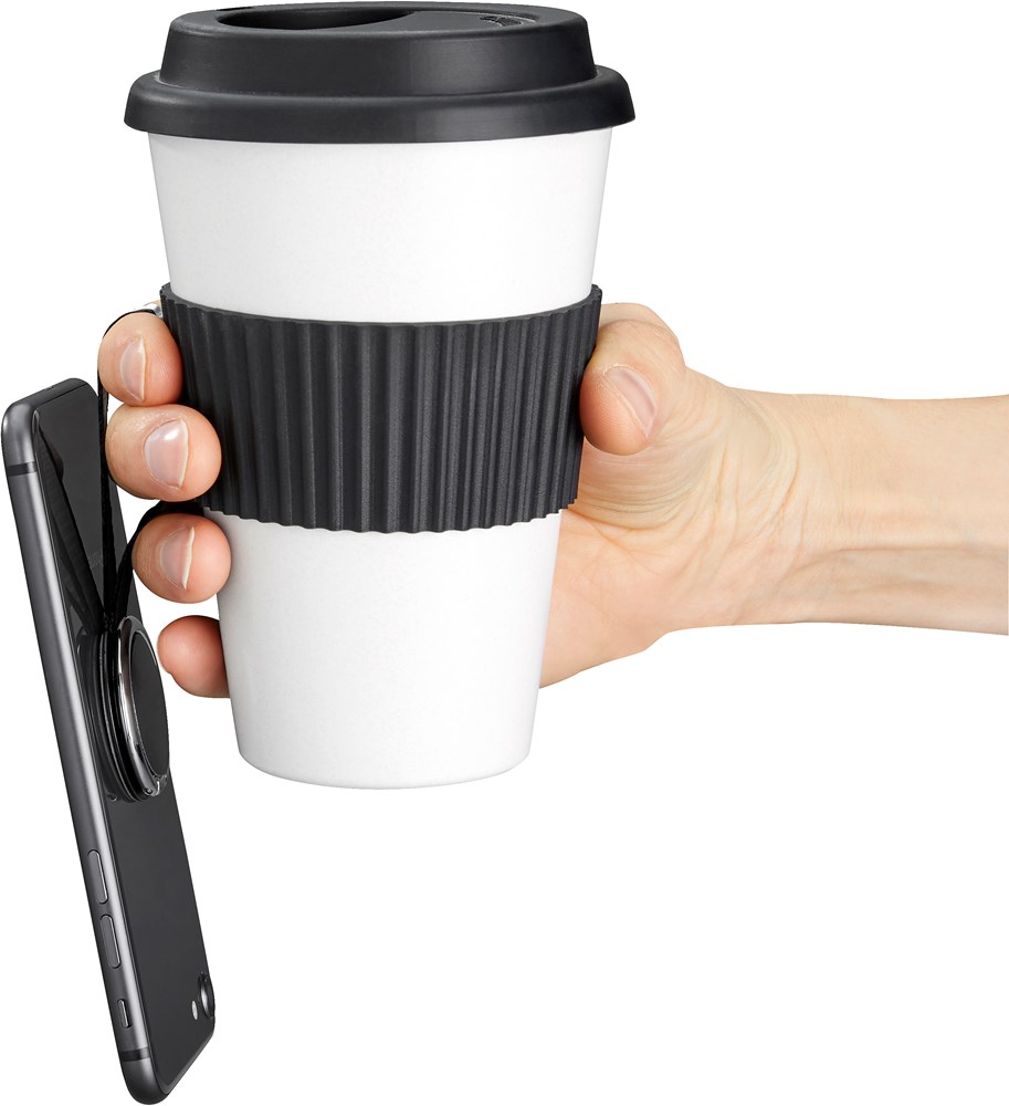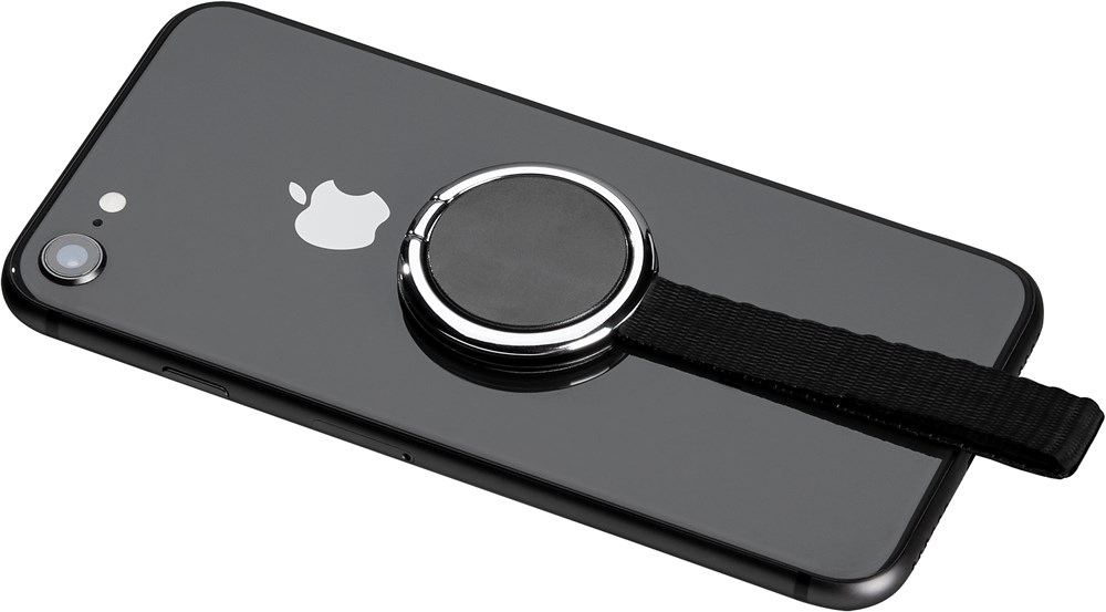 Multifunktioneller Handyring, sichere Fingerhalterung durch großzügige Schlaufe, diese ist per Click trennbar, dadurch kann das Smartphone auch per Wireless Charger induktiv geladen werden. Material: Metall, ABS, Nylonfaser Farbe: Silber und Schwarz Maße: 6 x Ø 37 mm Gewicht: 16 g Einzelverpackung Werbeanbringung: Auf der Scheibe, Ø 28 mm (D2/UV2) Clever, praktisch und 100% Klimaneutral