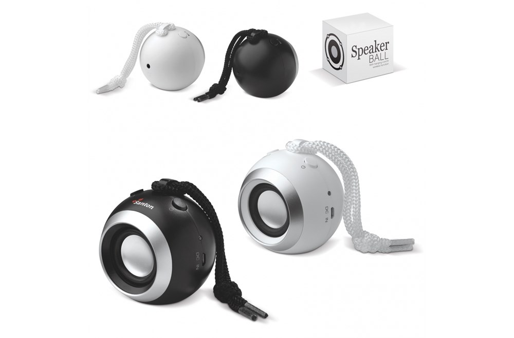 Kabelloser Lautsprecher. Der Lautsprecher Ball ist mit einem Band einfach z. B. an Ihre Tasche zu hängen.