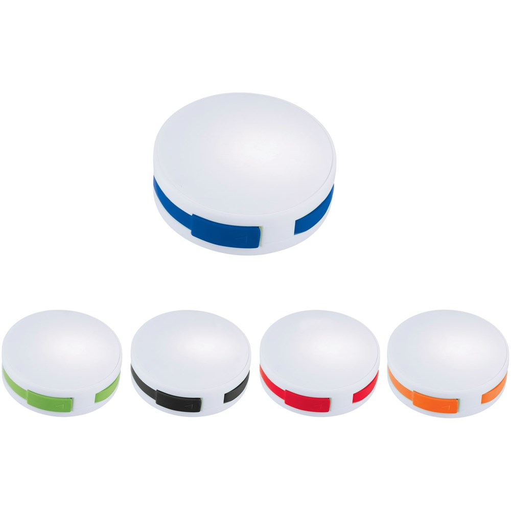 Runder USB Hub mit 4 Anschlüssen und Eingangsanschluss im Inneren. Verpackt in einer... mehr