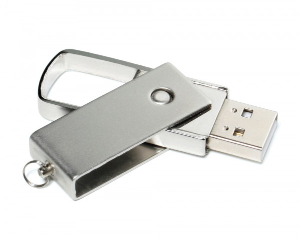 USB-Stick mit einem rotierenden Teil der den USB Anschluss schützt. Warum erweitern Sie Ihre Werbemitteilung nicht mit Datenaufspielung? Für nähere Informationen rufen Sie uns bitte an.