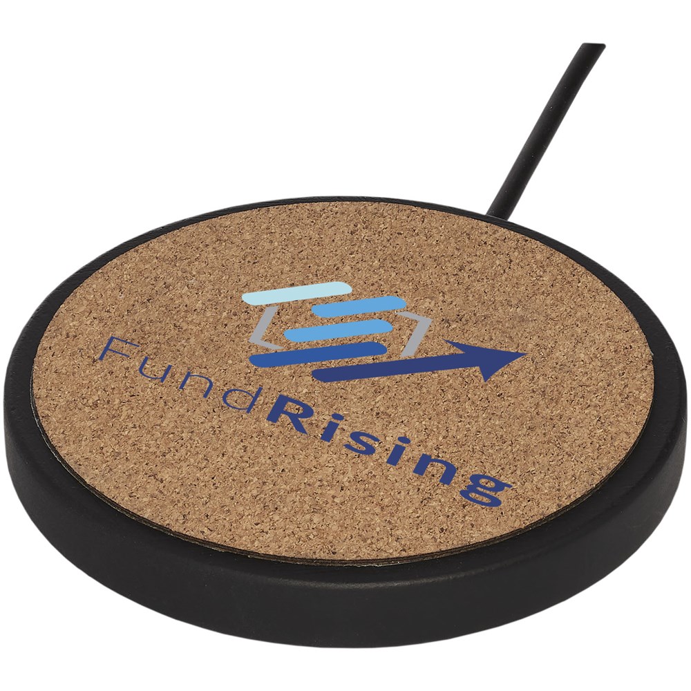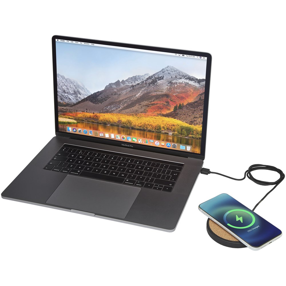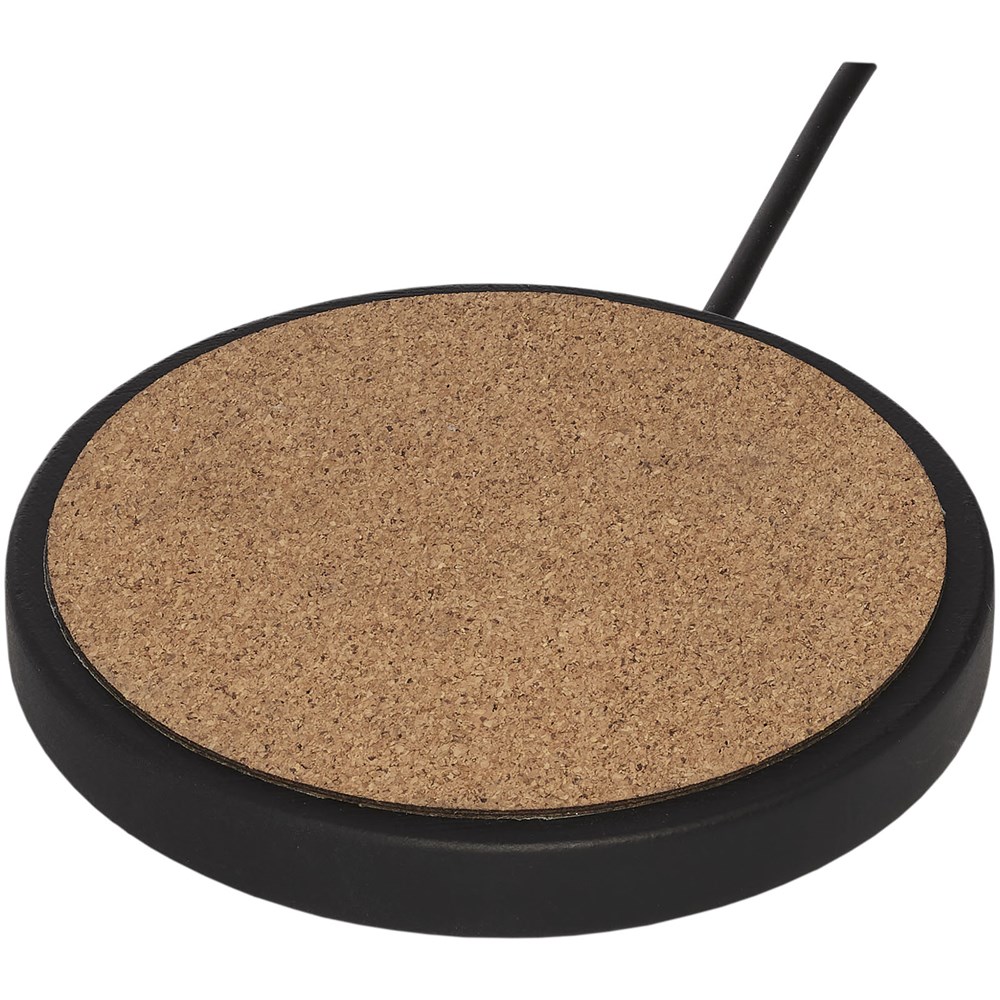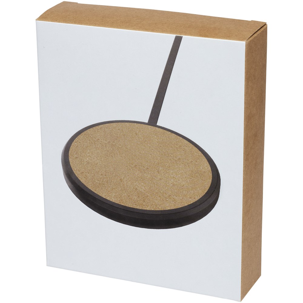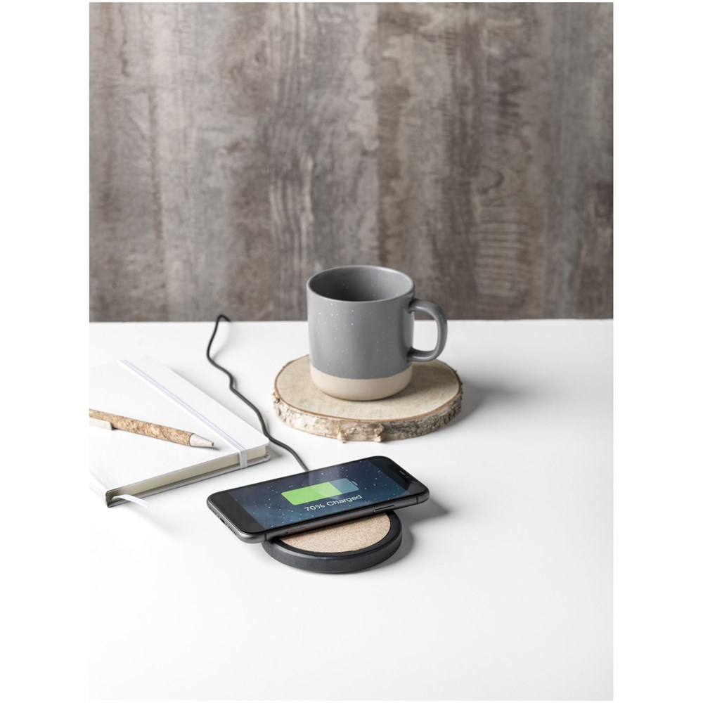 Kabelloses 10 W Ladepad aus einer Kombination von natürlichem Kalkstein und Kork. Um ein Gerät ohne drahtlose Technologie aufzuladen, wird ein externer Ladeempfänger oder ein Empfängergehäuse benötigt. Verpackt in einer Geschenkschachtel und wird mit einer Anleitung geliefert (beides aus nachhaltigem Material).