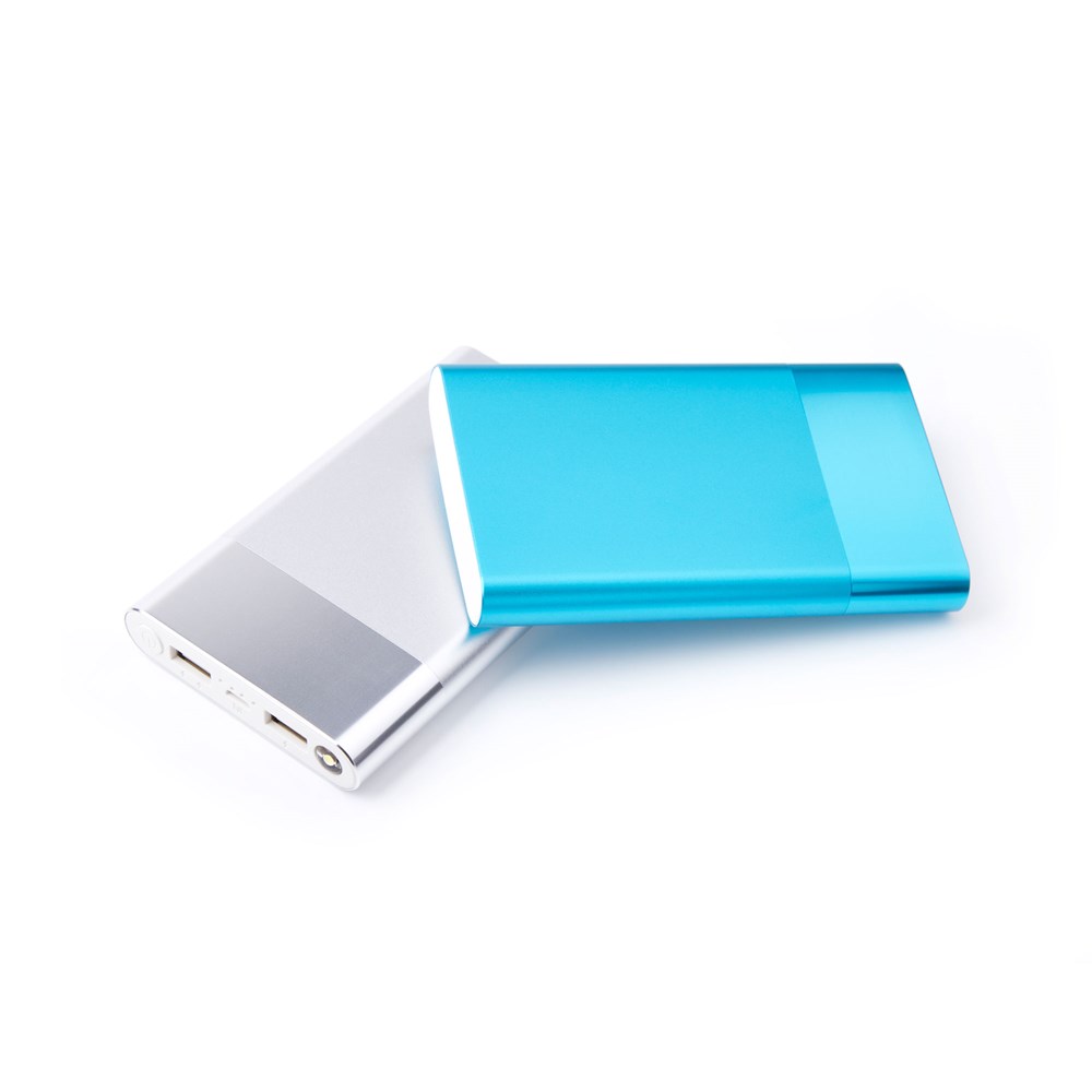 Unsere Powerbank Smooth hat zwei USB Ausgänge. Außerdem verfügt sie über eine integrierte, helle LED Taschenlampe. Diese robuste Powerbank ist leistungsstark und lädt Ihre Endgeräte zuverlässig auf.