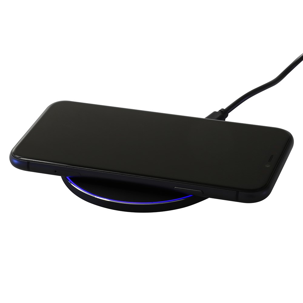 Ein Ring aus purer Energie. Kabellose Ladestation lädt alle induktionsfähigen Smartphones mit 10 Watt kabellos wieder auf. Ein schmales Lichtband leuchtet dabei farbig und signalisiert den entsprechenden Ladestatus. Schönes ultra-flat Design mit einer großzügigen Werbefläche für Ihr vollflächiges, photorealistisches Motiv.