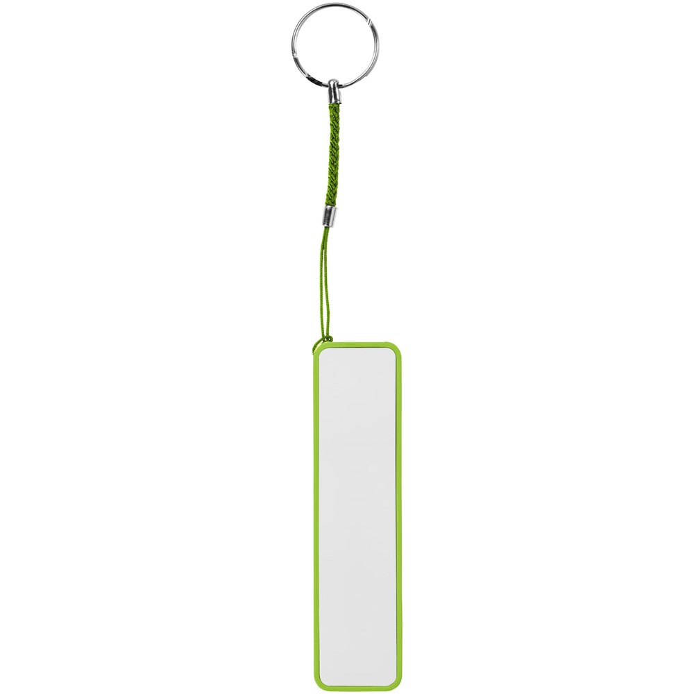 2000 mAh Akkukapazität mit LED Anzeige für den Ladefortschritt. Wiederverwendbare Powerbank lädt Geräte über das mitgelieferte USB-Kabel in ca. 2 Stunden auf. Mit geteiltem Schlüsselring aus Metall und weißem Karton.