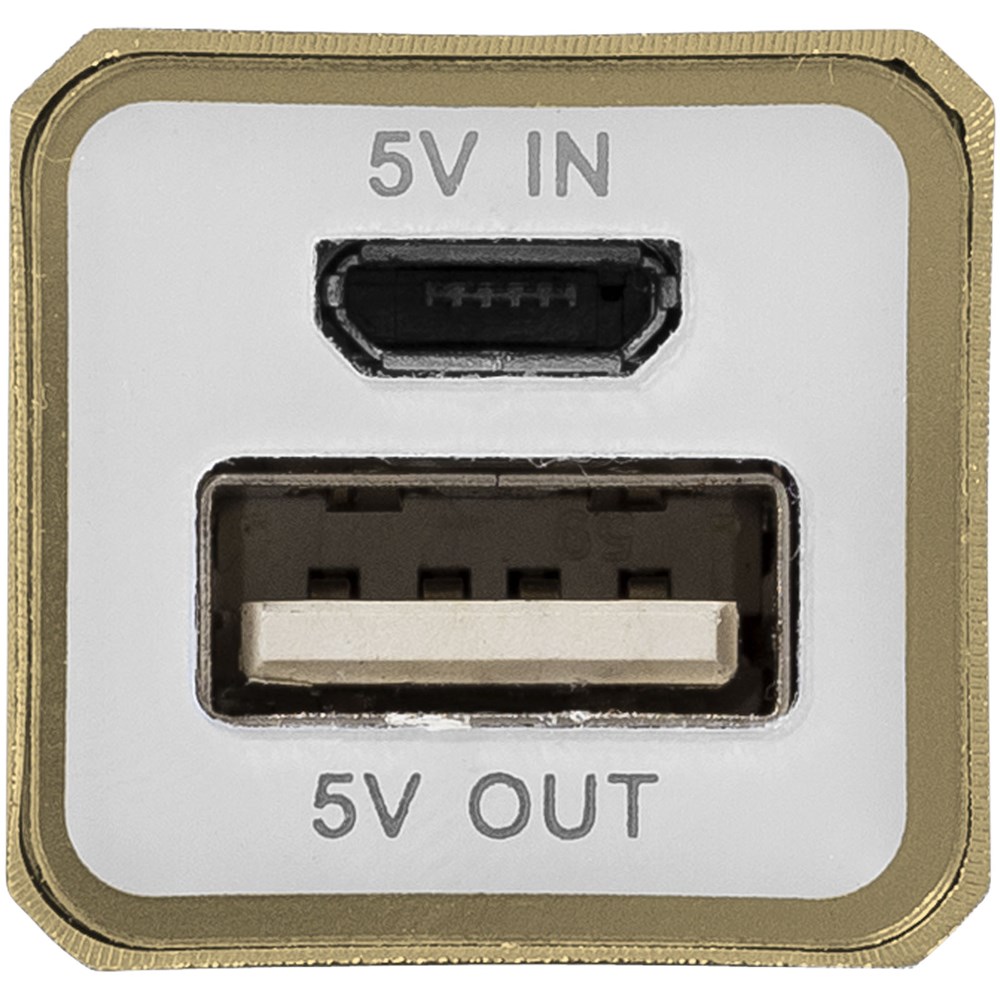 Die 2200 mAh Akkukapazität der Powerbank reicht aus, um ein mobiles Gerät oder Tablet (5V/1A) aufzuladen. Powerbank lädt über mitgeliefertes USB-Kabel und blaue Lichtanzeige schaltet sich ein, wenn sie voll aufgeladen ist. Metalleffektlack. Verpackt in einer weißen Geschenkbox.