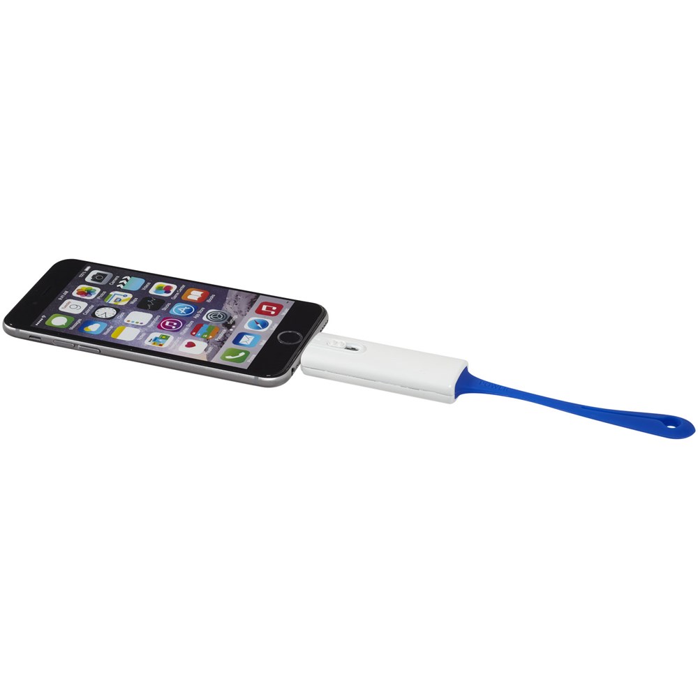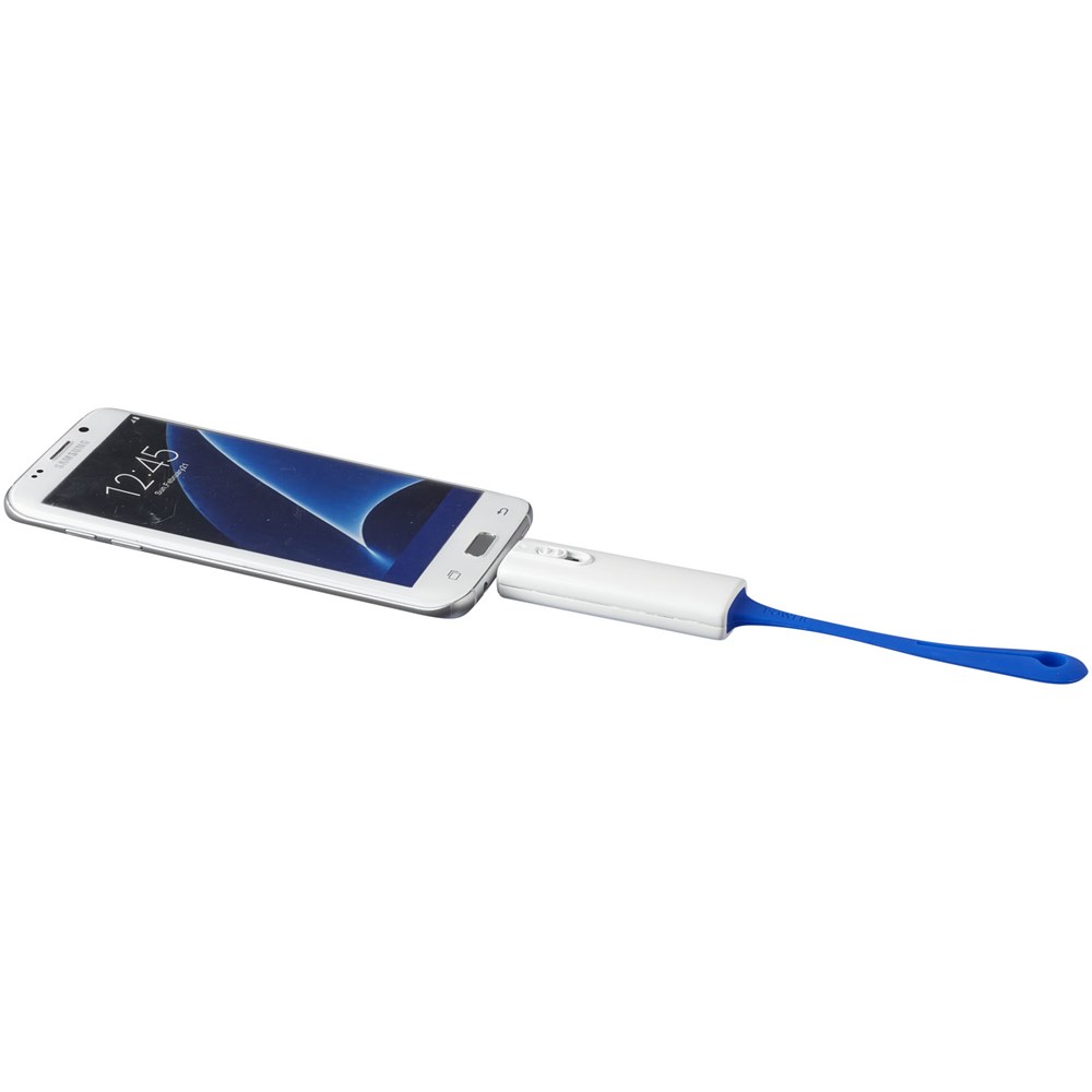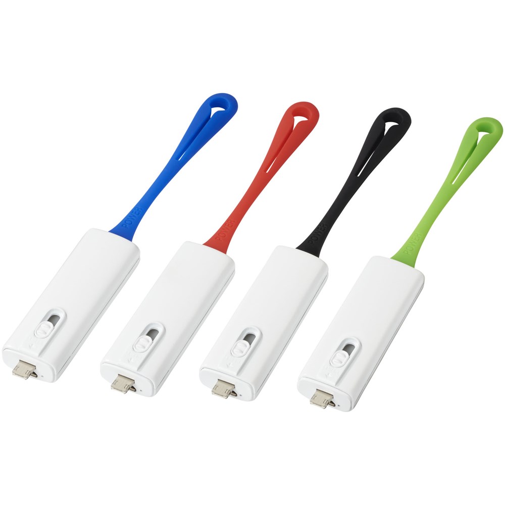 Diese Power Bank ist perfekt für den Notfall, um einen Power Boost zu geben. Sie enthält eine 700 mAh wiederaufladbare Lithium-Polymer-Klasse A Batterie mit einem Push-out 2 in 1 integriertem Anschluss um Android oder Apple Smartphones zu laden. Mit einem Silikon Gurt, um die Powerbank an Ihrem Geldbeutel oder ihrer Tasche zu befestigen. Verpackt in einer weißen Avenue Geschenkbox.