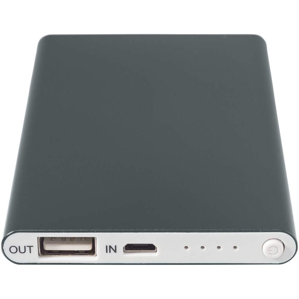 Diese schlanke und leichte Aluminium-Powerbank enthält einen Lithium-Polymer-Akku der Klasse A und hat eine Kapazität von 4000 mAh. Die LED Anzeigen leuchten während des Aufladens auf und zeigen die restliche Akkukapazität in der Powerbank an. Die Powerbank hat einen 5 V/1 A Eingang und einen 5 V/1 A Ausgang. Mit USB-zu-Micro-Ladekabel. Metalleffektlack. Verpackt in einer weißen Geschenkbox.