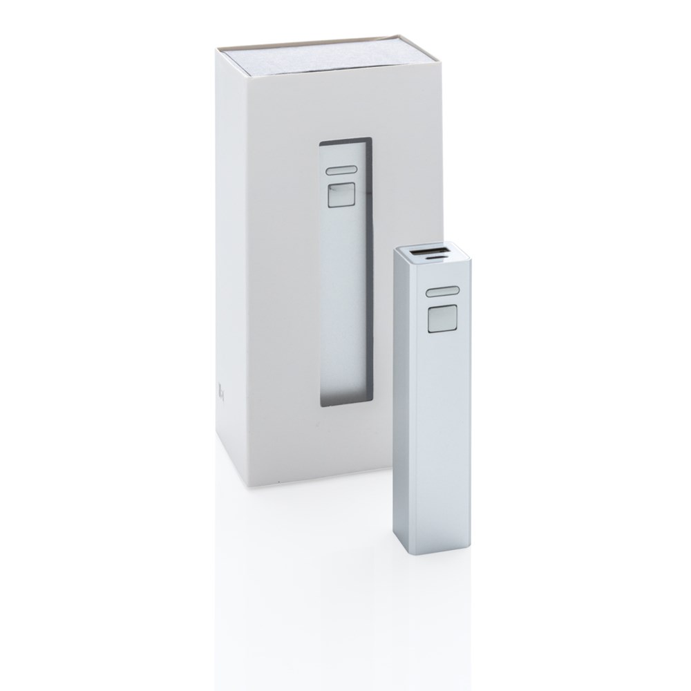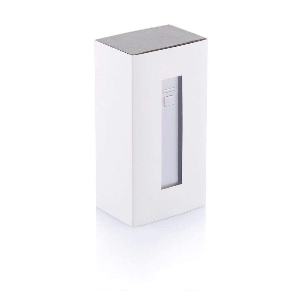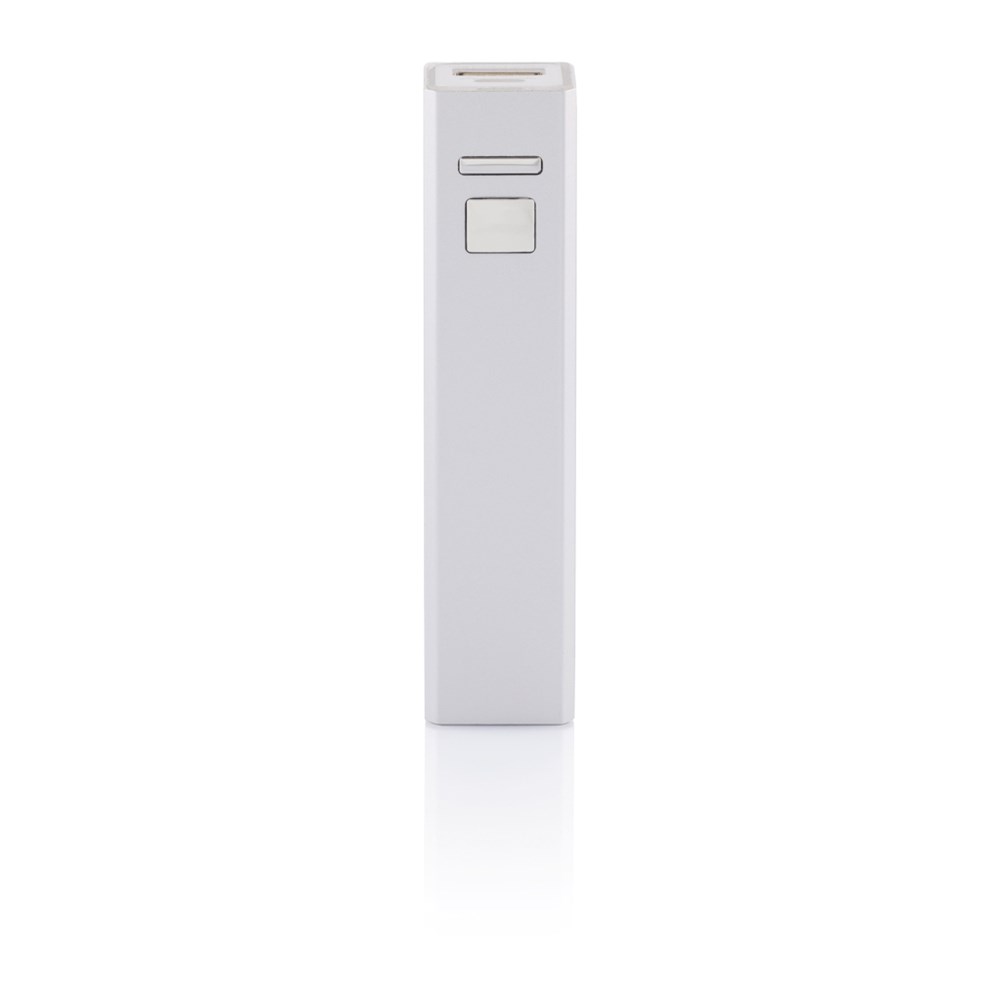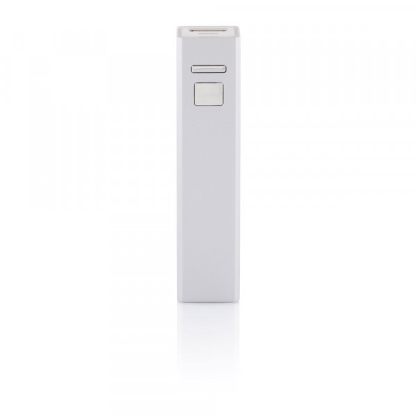 Kompakte 2.200 mAh Backup-Lithiumbatterie aus Aluminium. Der USB Anschluss mit einem Output von 5V/1A ermöglicht das Aufladen jeden beliebigen Mobiltelefons.