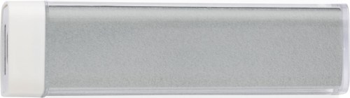 Powerbank aus ABS-Kunststoff, 2200 mAh Kapazität, Ein- und Ausgangsleistung 5V/1000 mAh, inkl. Verbindungskabel (USB und Micro USB, ca. 25 cm lang), Aufladezeit: ca. 5 Std. Für alle handelsüblichen Tablets und Smartphones verwendbar.