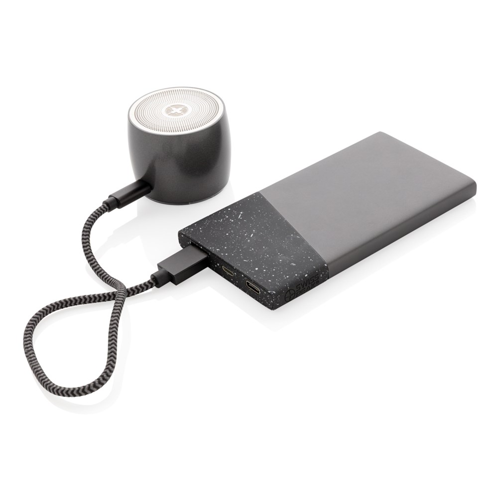 Diese 5.000 mAh Powerbank aus hochwertigem Aluminium passt bequem in jede Tasche. Ist die A-Grade Lithium Polymer Batterie der Powerbank voll geladen können Sie Ihr Smartphone wieder bis zu 2x aufladen. Mit Ladestandsanzeige. Micro-USB Port IN: 5V/2A; Type-C Input: 5V/2A; USB-Output: 5V/2.1A. In Geschenkbox verpackt mit Nylon Ladekabel.