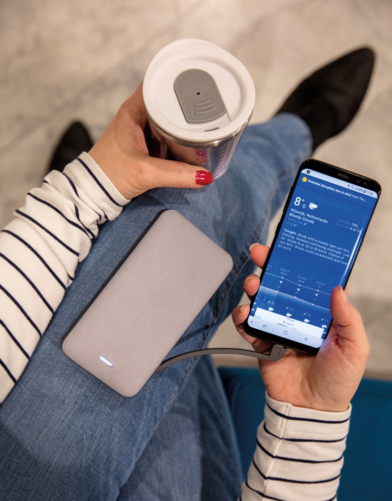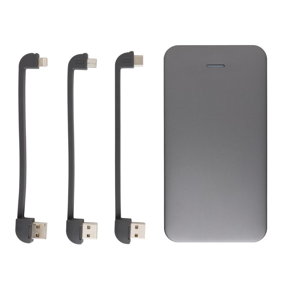10.000 mAh Powerbank aus Aluminium mit Mfi ( Made for iPhone, iPad, iPod) Lizenz. Durch Ihre 3 verschiedenen Kabel laden Sie nun alle mobilen Geräte. Inkl. Mfi-lizensiertem Kabel für alle Apple Geräte, einem Micro-USB Kabel und einem Type-C Kabel. Das Kabel verstauen Sie in der Powerbank und haben es so immer dabei. Durch den Dual-Output lassen sich sogar zwei Geräte zeitgleich laden. Mit extra schnellem Input um die Powerbank selbst noch schneller zu laden. Output: DC 5V/3.1A - Input: 5V/2A