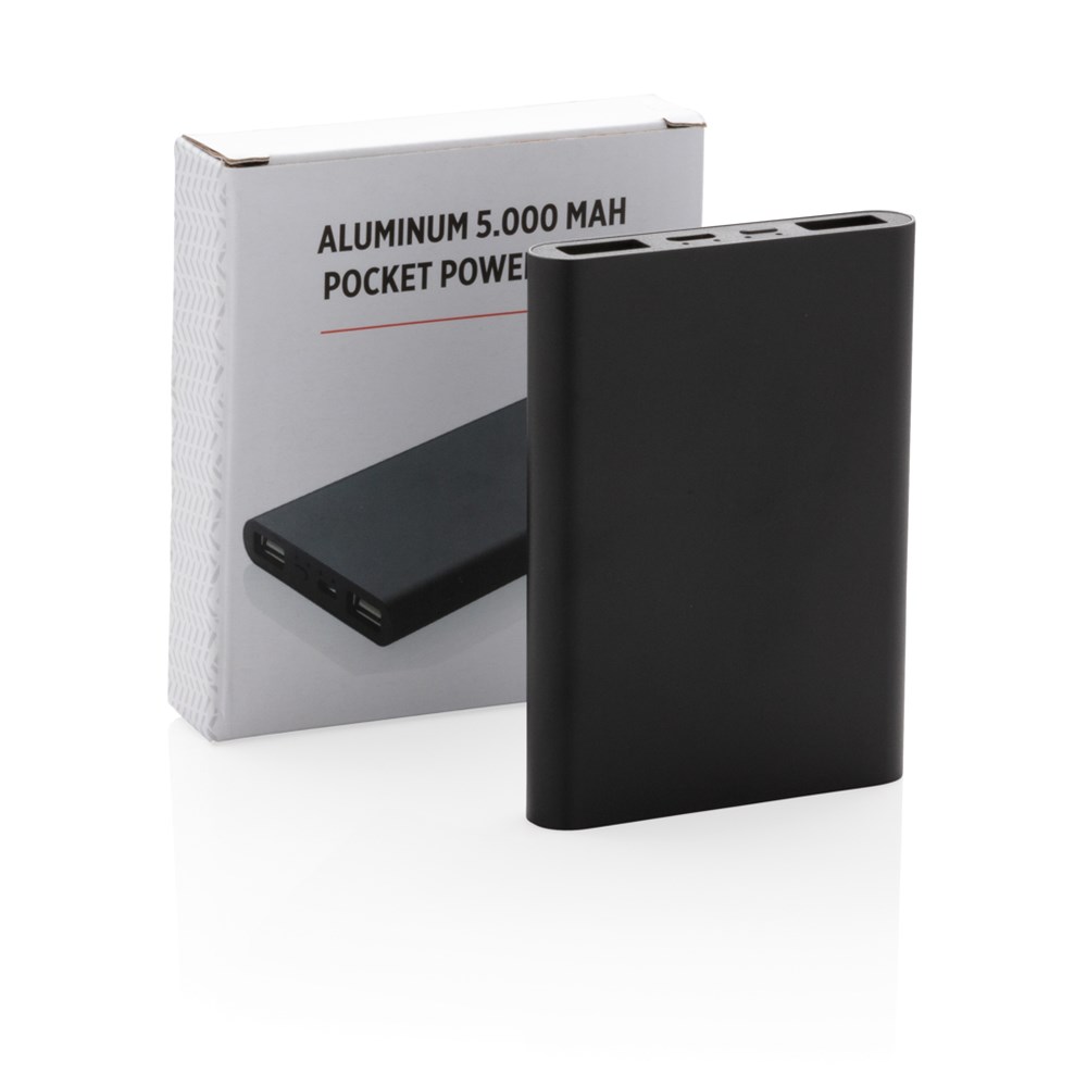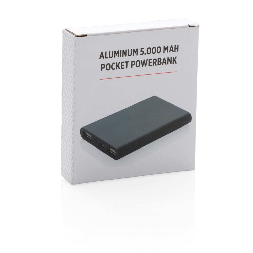 Diese ultradünne 5.000 mAh Powerbank aus Aluminium mit einer A-Grade Lithium-Polymer Batterie lädt Ihr Smartphone bis zu 3 mal. Die LED's zeigen Ihnen den Ladestand der Powerbank an. Micro-USB Input: 5V/1.5A. Output: 5W; 5V/2.1A.
