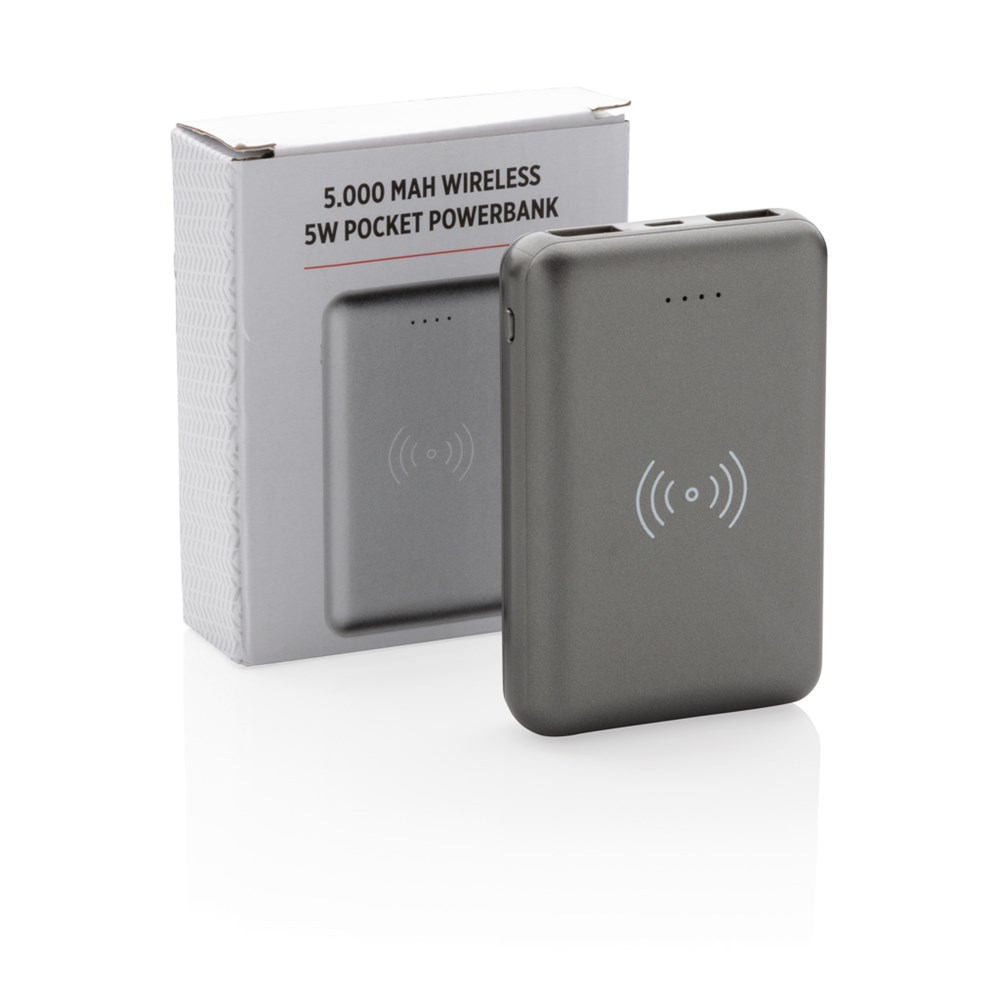 Diese ultradünne 5.000 mAh Powerbank mit einer A-Grade Lithium-Polymer Batterie lädt Ihr Smartphone herkömmlich per USB-Port oder als 5W Wireless Charger. Das Gehäuse aus ABS, die LED's zeigen Ihnen den Ladestand der Powerbank an. Micro USB Port in: 5V/1.5A. Output: 5W; 5V/2.1A Wireless Output: 5V/1A