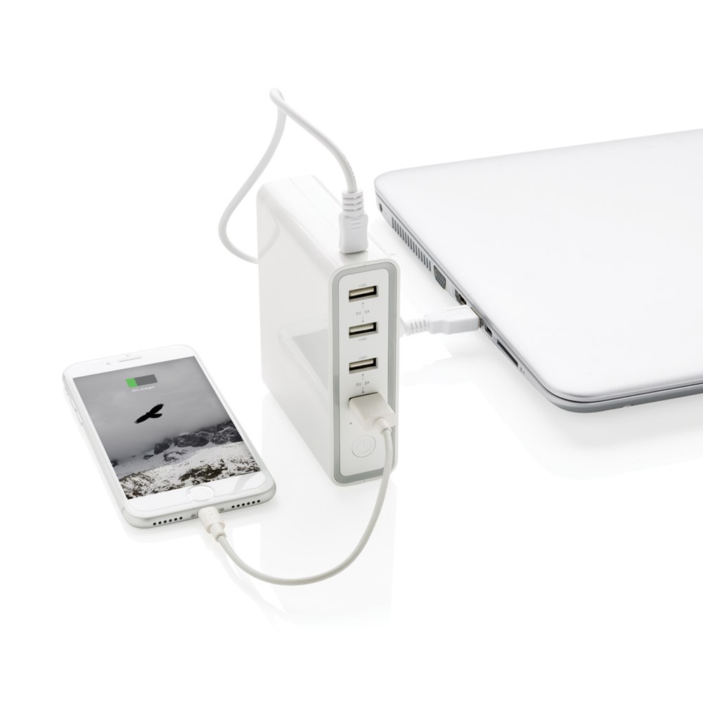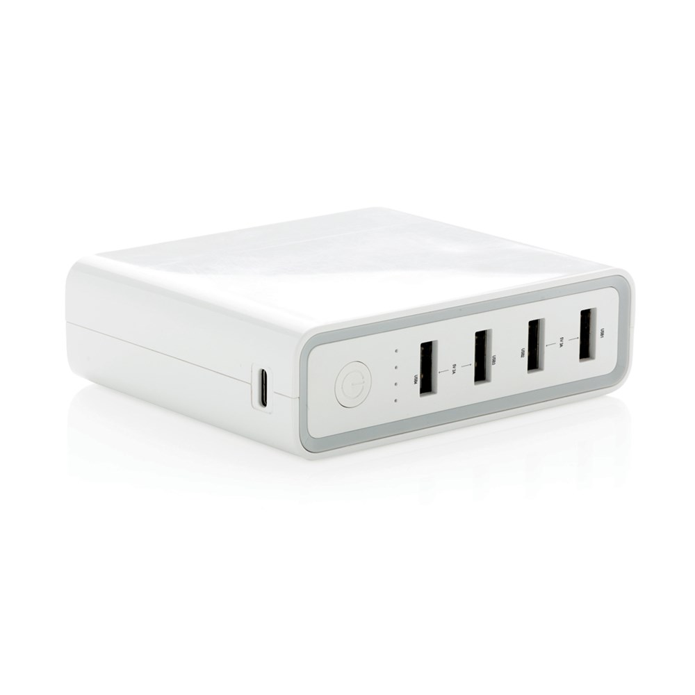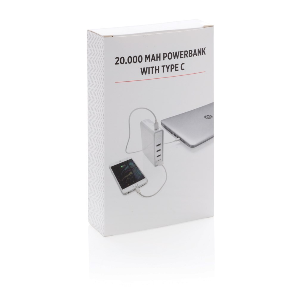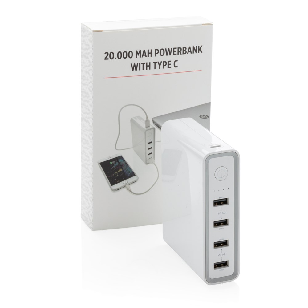 Kraftvolle aber tragbare 20.000 mAH Lithium Battery mit 4 USB Ports und einem Type C 3.0-Anschluß ( Input und Output). Die Powerbank kann sowohl über Micro-USB ( 2A) als auch über den superschnellen Type C-Anschluß ( 2.4 Input) geladen werden. Output der 4 USB: 5V/2A - Output Type C: 5V/3A, 9V/3A,12V/3A, 14.5V/2.4A, 20V/2A.Inklusive Micro-USB Ladekabel.
