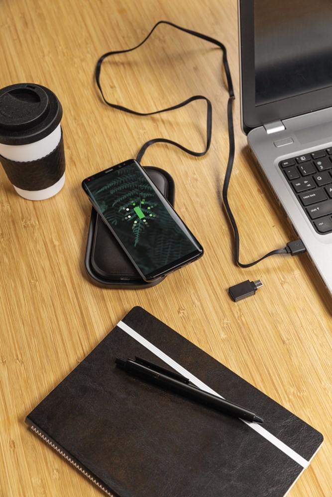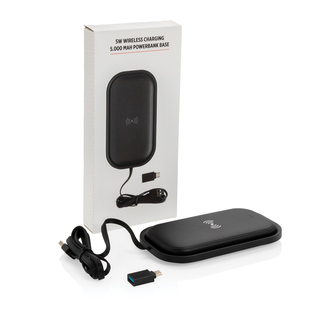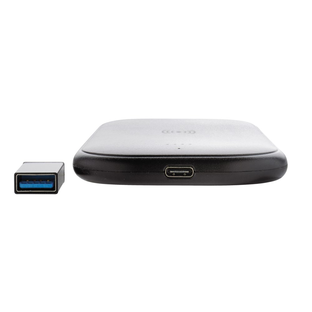 Einzigartiges Kombination einer Powerbank aus ABS als Tischladegerät in. Setzen Sie die Powerbank einfach in die Basis, um sie per Induktion aufzuladen. Dies garantiert Ihnen, dass die Powerbank immer voll aufgeladen ist, wenn Sie sie benötigen. Wenn Sie sie in der Basisstation platzieren, können Sie Ihr Telefon darauf platzieren, um wiederum auch dieses aufzuladen. Mit der Powerbank können Sie unterwegs Ihr Smartphone über das drahtlose 5-W-Ladegerät oder über den Type-C Port per Kabel aufladen. Der Artikel wird mit einem Type-C zu USB-A-Adapter zur Verwendung von USB A-Kabeln geliefert. Drahtloses Laden ist kompatibel mit allen QI-fähigen Geräten wie Android der neuesten Generation, sowie ab dem iPhone 8. USB-Eingang mit integriertem Kabel 5V/2A; Type-C Input 5V/2A; Type-C Output: 5V/2,1A; Wireless Output 5V/1A. Inklusive 4 LED-Anzeigen zur Anzeige der verbleibenden Kapazität. Inklusive integriertem 100 cm PVC-freiem Micro-USB-Kabel aus TPE.