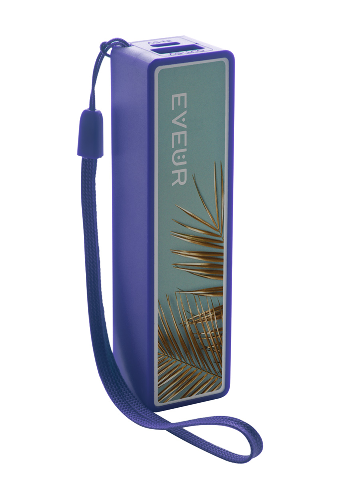 Powerbank aus Kunststoff mit Handschlaufe, Kapazität: 2000 mAh. Inkl. USB-Ladekabel mit Micro-USB-Stecker.
