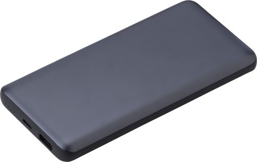 Powerbank aus ABS-Kunststoff mit Aluminiumlegierung mit einer Kapazität von 10.000 mAh Kapazität und LED-Anzeigen. Die Powerbank verfügt über einen USB-C-Anschluss (Eingang 5V/3A, 9V/2A, 12V/1,5A, Ausgang 5V/3A, 9V/2A, 12V/1,5A) und einen USB-A-Anschluss