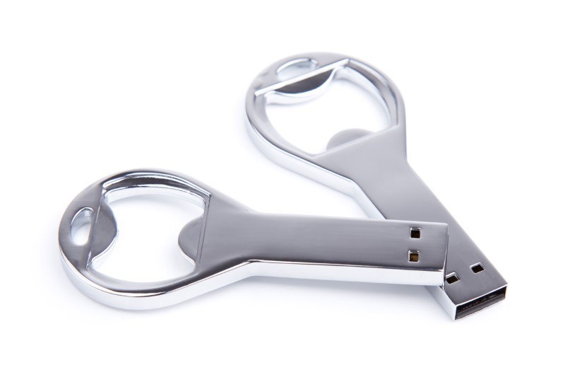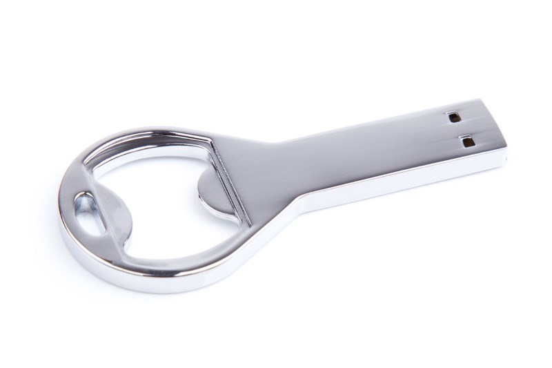 Sehr auffälliger und hochwertiger USB Stick in Form eines Flaschenöffners. Er ist Schlüsselanhänger, Flaschenöffner und USB Stick in einem. Exkl. Gema Gebühren