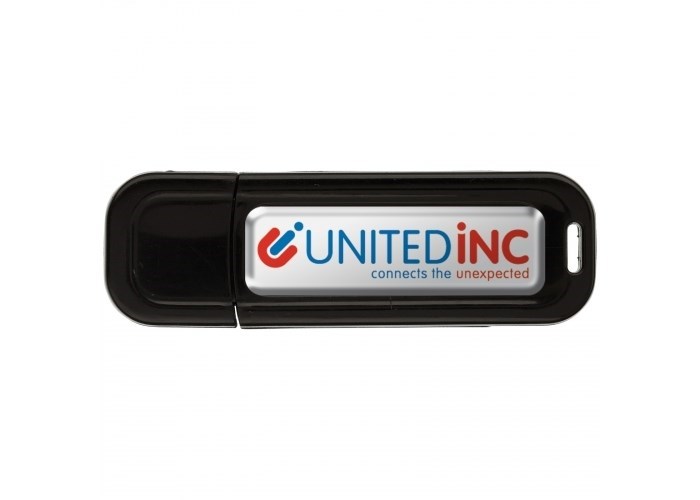 8GB USB 2.0-Stick mit doppelseitigem Doming inklusive Vollfarbdruck. In den Farben weiß und schwarz ab Lager lieferbar. Wird in einer weißen Box geliefert.