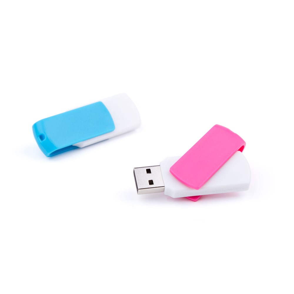 Funktionaler und farbenfroher USB Stick. Durch seinen drehbaren Bügel wird die USB Schnittstelle gut geschützt.
