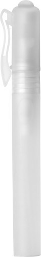 Handspray in transparenter Kunststoff-Röhre mit farbigem Deckel, Inhalt ca. 10 ml.
