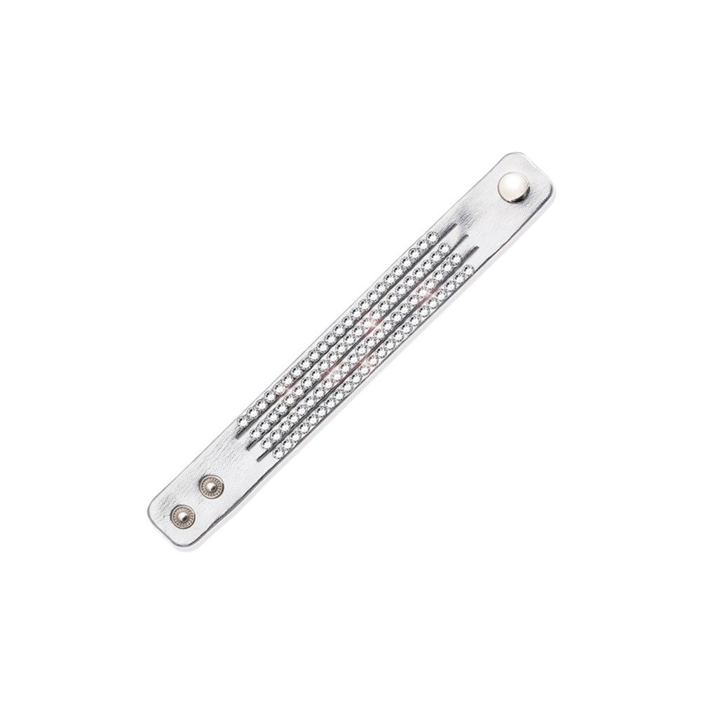 Elegantes Kunstlederarmband mit glänzenden Steinen in lebendigen Farben. Mit verstellbarem Druckknopfverschluss.
