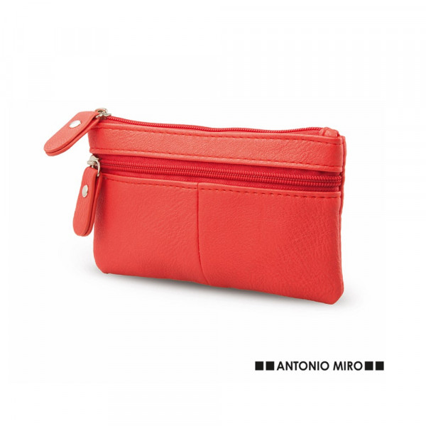 Geldbörse von Antonio Miró mit lebhaftem Design aus weichem, glänzendem Kunstleder in einer Vielzahl von lebendigen Farben. Mit zwei Reißverschlusstaschen und farblich passendem, verstärktem Zugband.