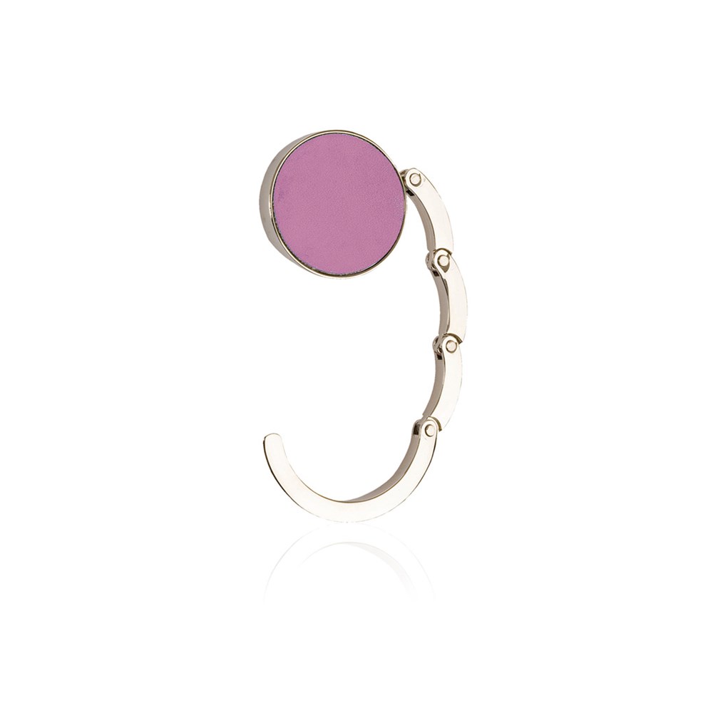 Klappbarer Handtaschenhalter aus Metall mit Kunstledereinsatz in leuchtenden Farben. Präsentiert in einer individuellen Box mit Stanzung im Inneren.