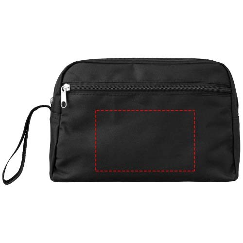 Kulturbeutel mit Riemen, Hauptfach mit Reißverschluss und Reißverschlusstasche vorne.