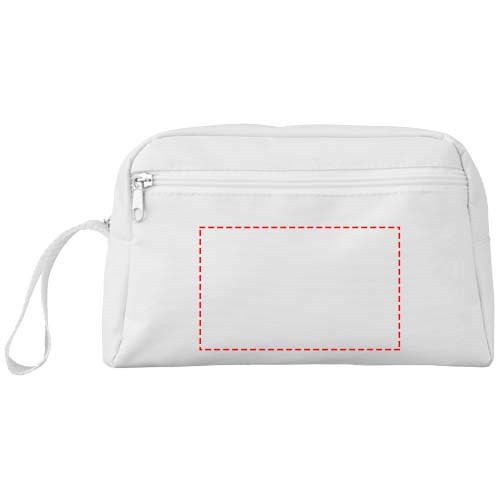Kulturbeutel mit Riemen, Hauptfach mit Reißverschluss und Reißverschlusstasche vorne.