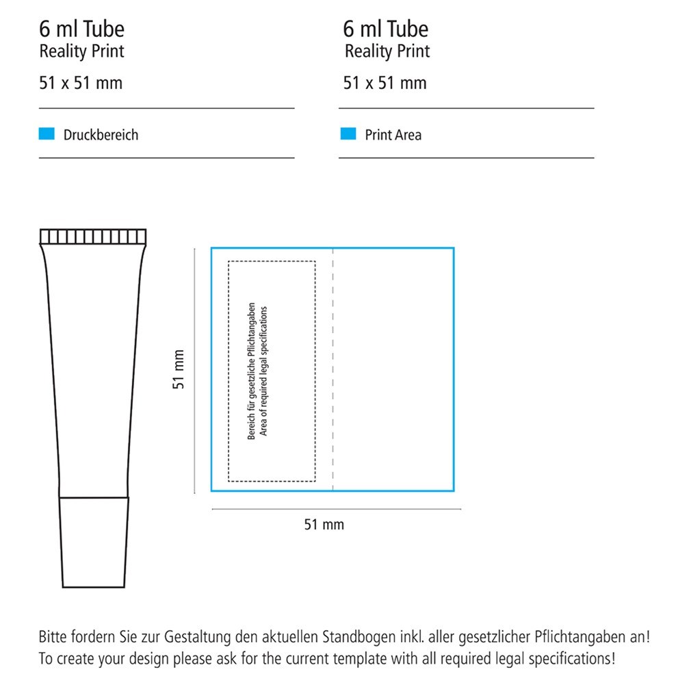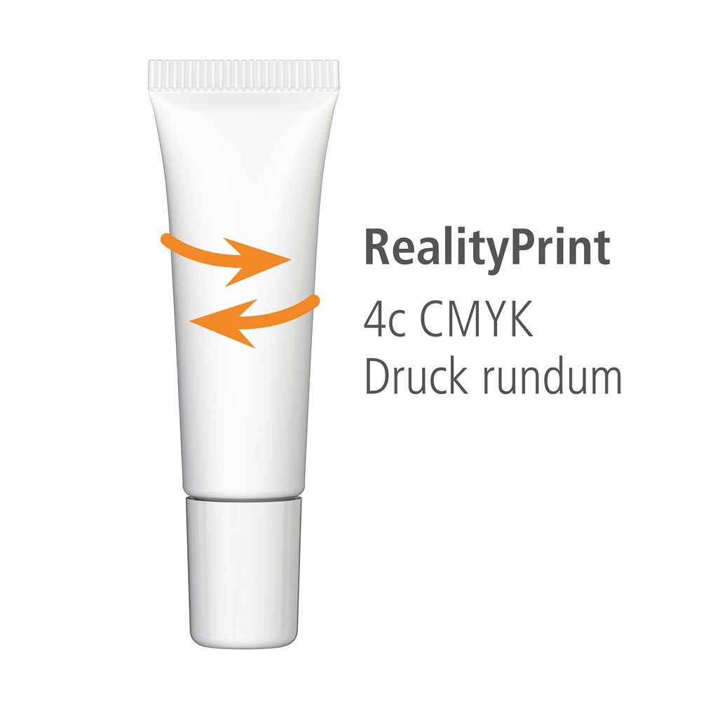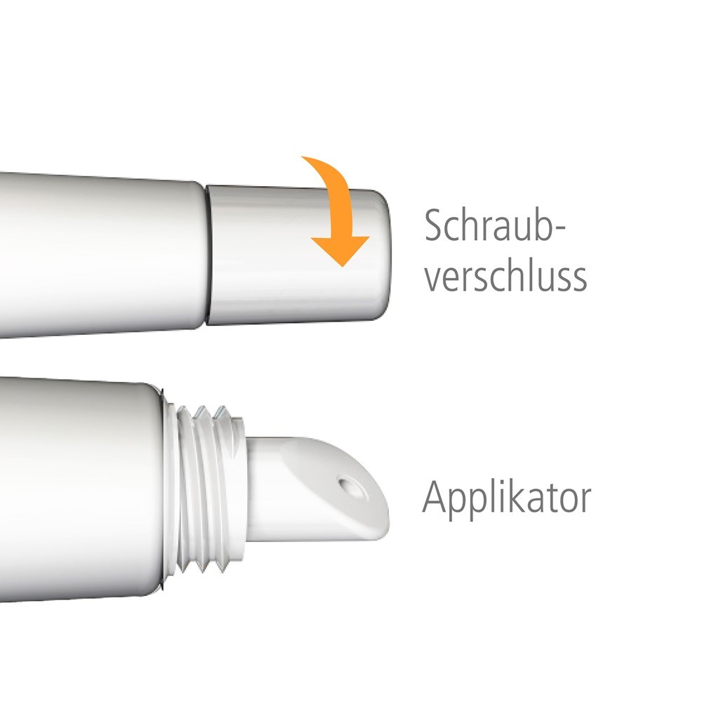 Lippenbalsam, 6 ml Tube (weiß) mit Applikator und passendem Schraubverschluss.