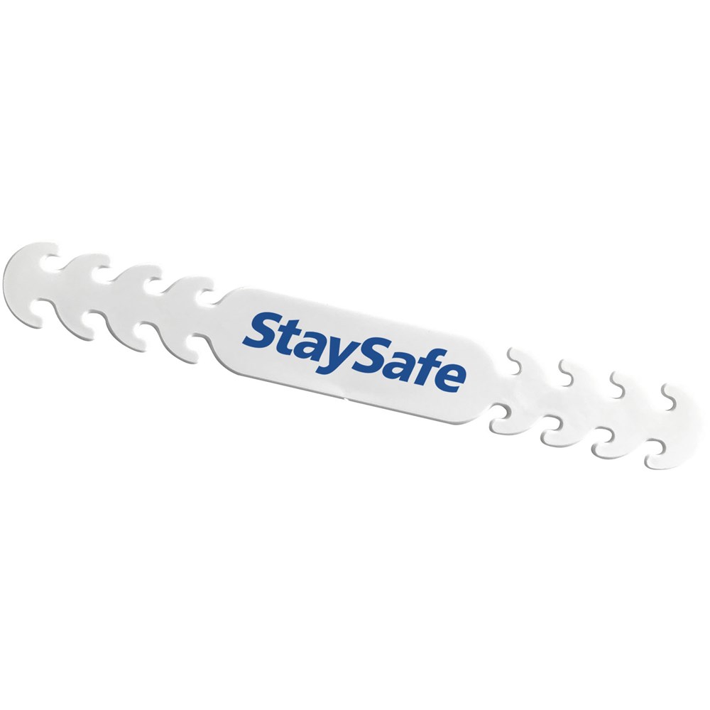 Halterung, mit der Schutzmasken über längere Zeit bequem getragen werden können. Die Halterung hat kleine Haken, um den Gummizug einer Maske straff zu halten und Schmerzen oder Beschwerden zu lindern, wenn der Gummizug in direktem Kontakt mit den Ohren des Trägers steht. Dieses Produkt enthält die antimikrobielle Biomaster-Technologie, die den Schutz vor dem Wachstum schädlicher Mikroorganismen während der Lebensdauer des Produkts bietet.