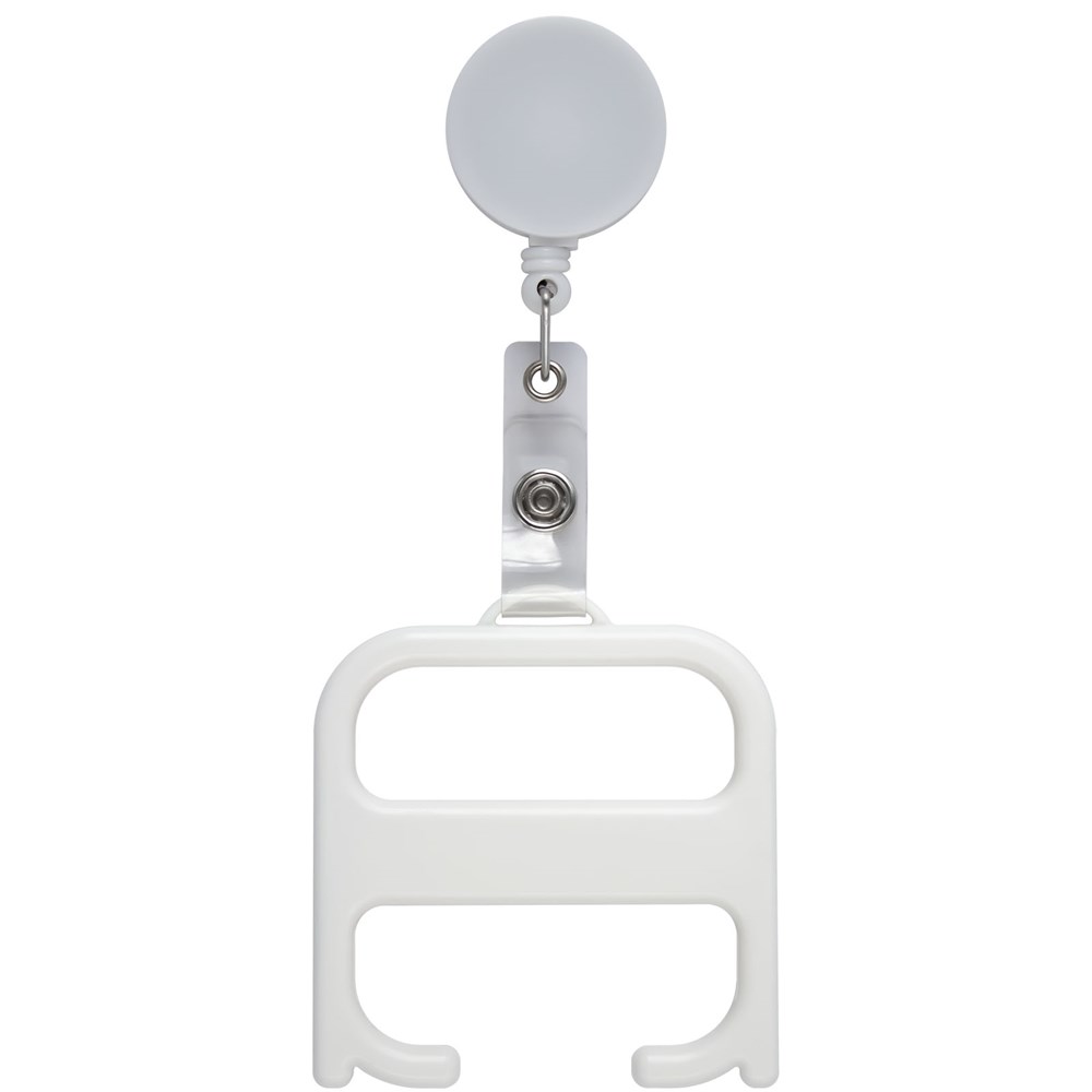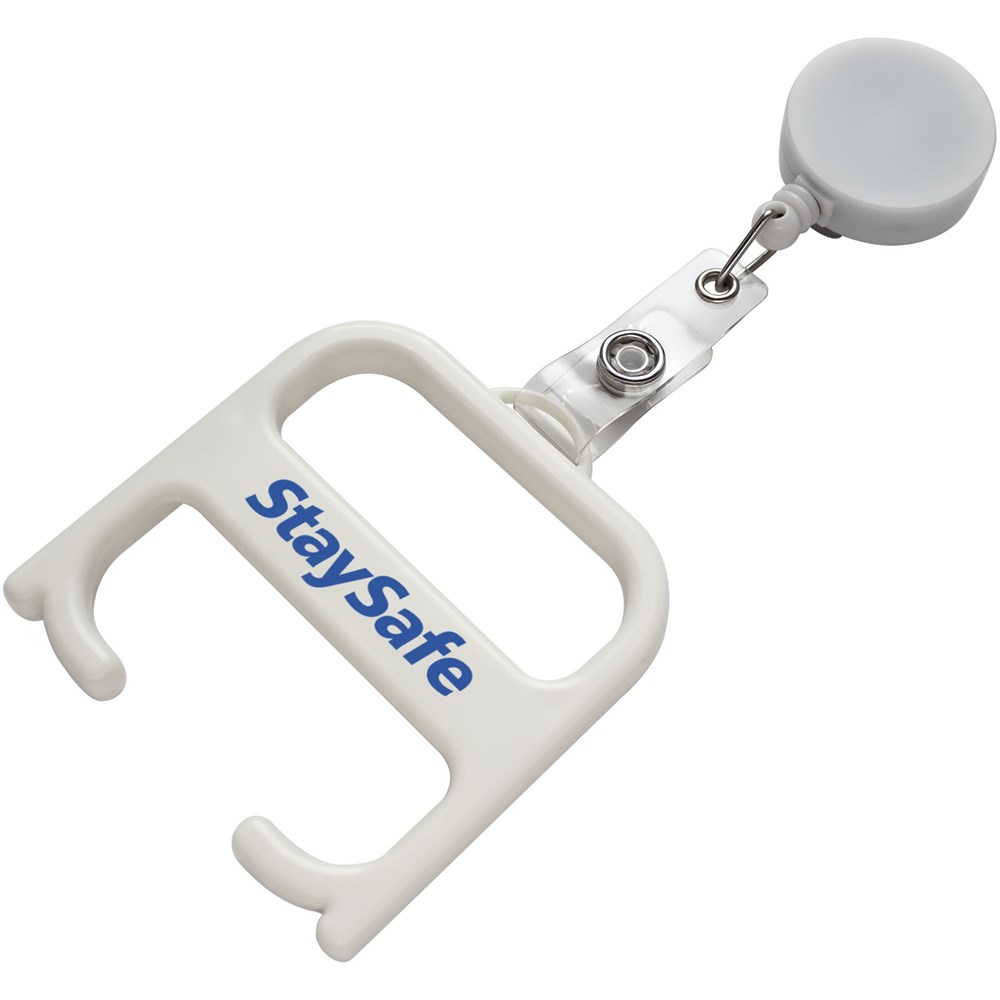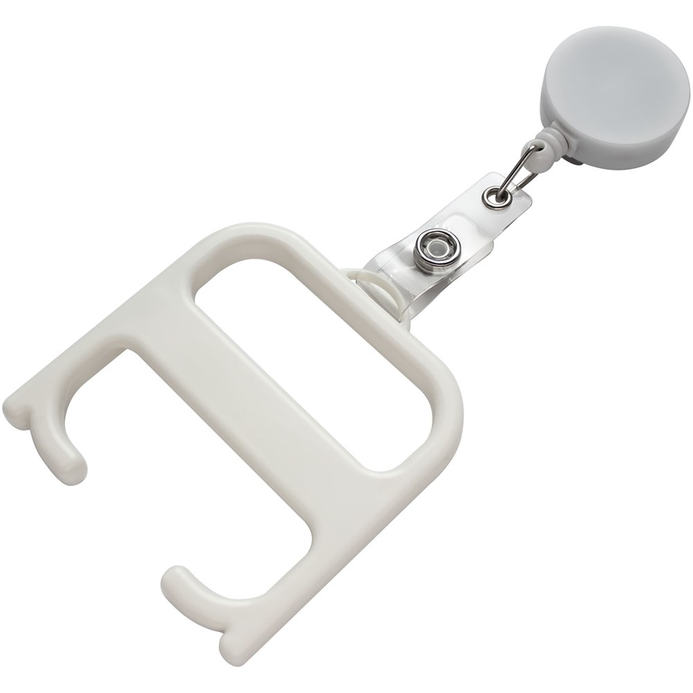 Ein robustes Hygienetool, mit dem der Anwender Türen öffnen und Tasten drücken kann, ohne direkten Kontakt zu haben. Hergestellt aus verstärkten Materialien für zusätzliche Haltbarkeit. Dieses Produkt enthält die antimikrobielle Biomaster-Technologie, die den Schutz vor dem Wachstum schädlicher Mikroorganismen während der Lebensdauer des Produkts bietet. Wird mit einem Rollerclip geliefert.