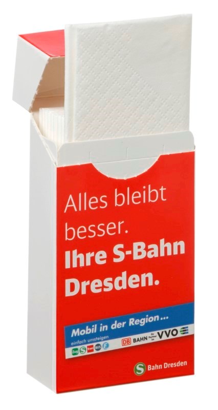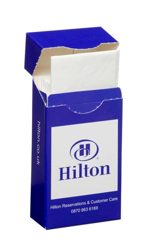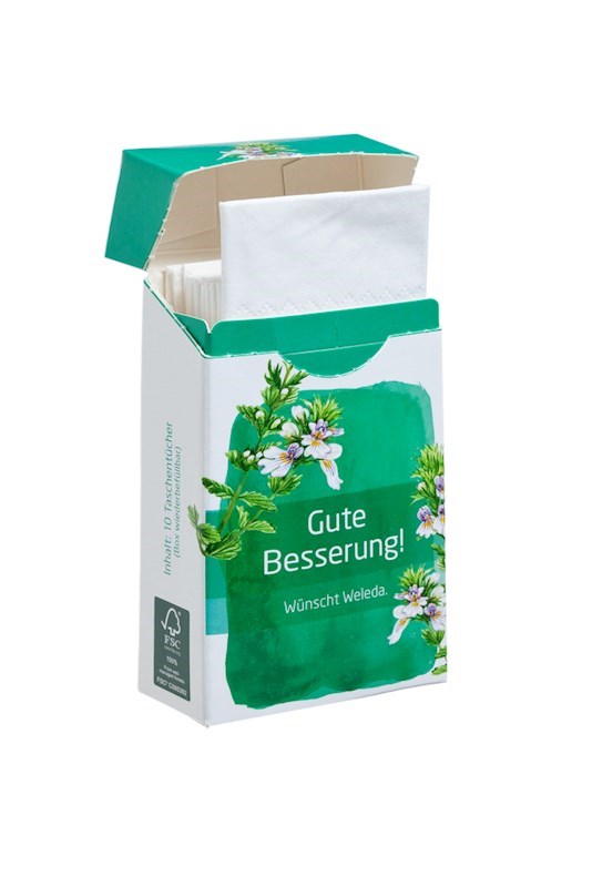 Pocket Box, Taschentücher-Box, 10 x 4-lagig unbedruckte Tücher, Abmessungen Taschentücher: 21,0 x 21,0 cm. Bedruckung in 4C.