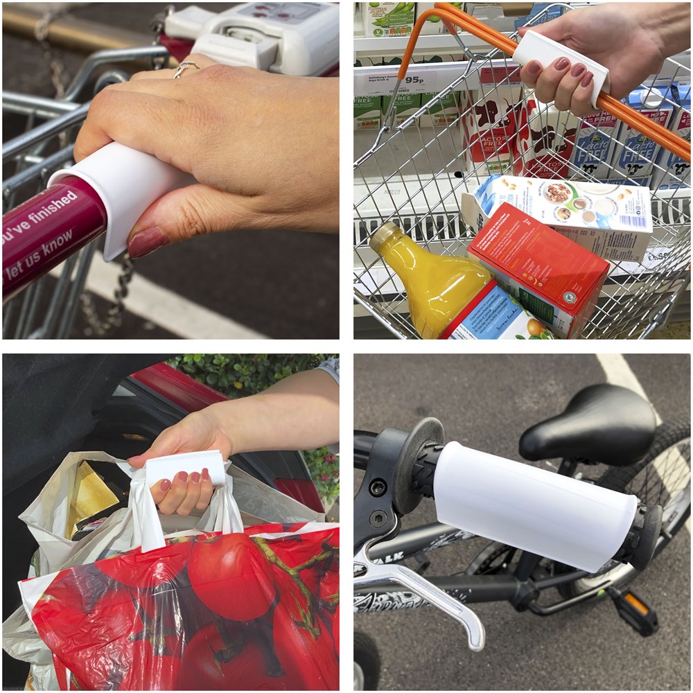 Der ideale Schutzbegleiter! Der Handle Guard wird im Zweierpack geliefert. Die Hülle lässt sich über Griffe stülpen und ermöglicht eine Nutzung ohne direkten Kontakt mit den Händen. Ideal für alle Bereiche vom Einkaufswagen bis hin zu Fitnessgeräten. Der Griffschutz kann auch zum Tragen mehrerer Einkaufstaschen verwendet werden. Besteht aus der antimikrobiellen Biomaster-Technologie, die während der gesamten Lebensdauer des Produkts Schutz vor der Ansiedlung schädlicher Mikroorganismen bietet. Hergestellt in Großbritannien.