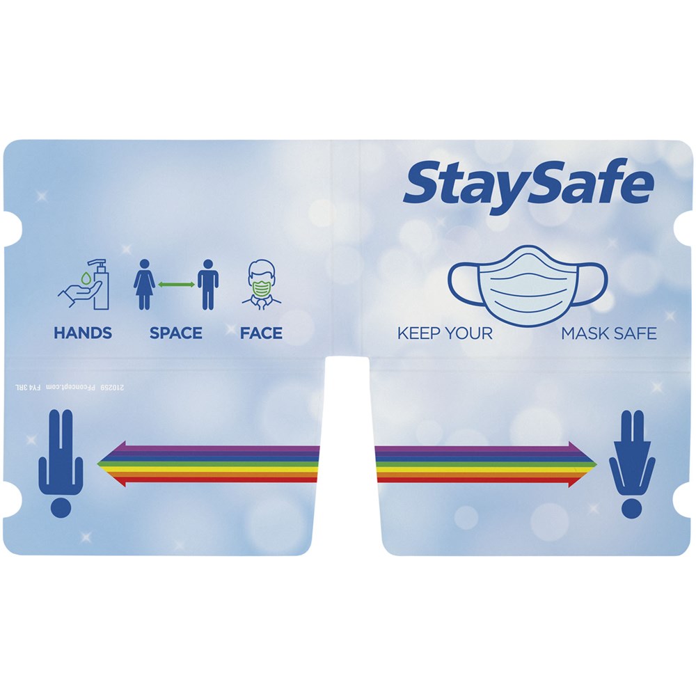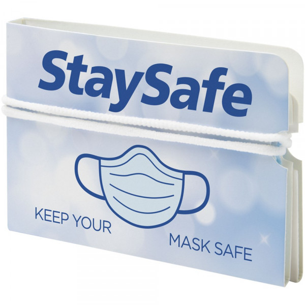 Eine praktische, zusammenfaltbare Hülle aus Karton zur hygienischen Aufbewahrung von Gesichtsmasken bei Nichtgebrauch. Die Hülle besteht aus 280 g/m² beschichteten Karton, das beim Drucken mit einem farbigen Design über die gesamte Hülle ein lebendiges Finish ergibt. Legen Sie zur Verwendung die Maske einfach über die flache Karton-Folie, beachten Sie die Faltmarkierungen und verschließen Sie die Hülle mit den Ohrbändern der Maske.
