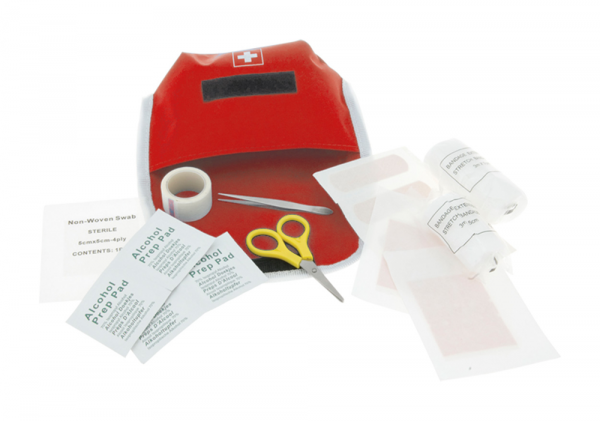 Este-Hilfe-Set: Schere, Pflaster, Pinzette und Mullbinden im Polyester-Etui. mehr