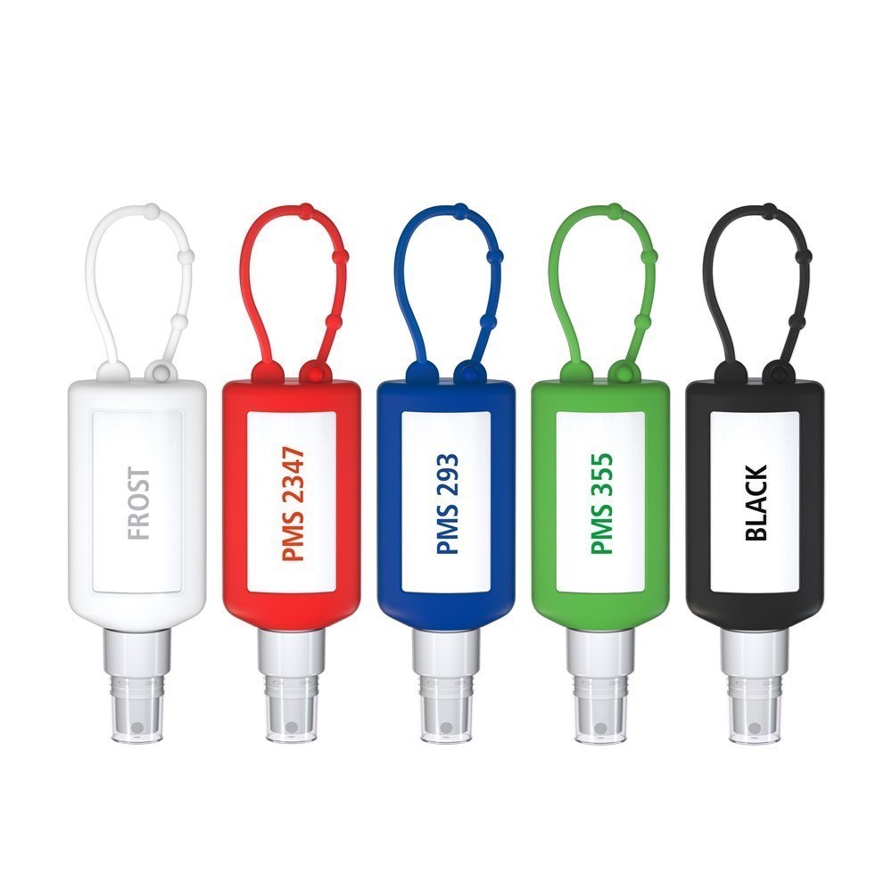 Praktische Kosmetikflasche zum Anhängen! Das Spray mit Silikonhülle ist nicht nur optisch ein echter Hingucker! Raffiniert mit Schlaufe zum Anhängen an de Strandtasche, den Wander-Rucksack, den Ski-Anorak oder an den Kinderwagen. 50 ml PET Flasche (weiß) mit weißem Pumpaufsatz und transparenter Schutzkappe; Silikonhülle und Schlaufe in rot. Nachfüllbar.