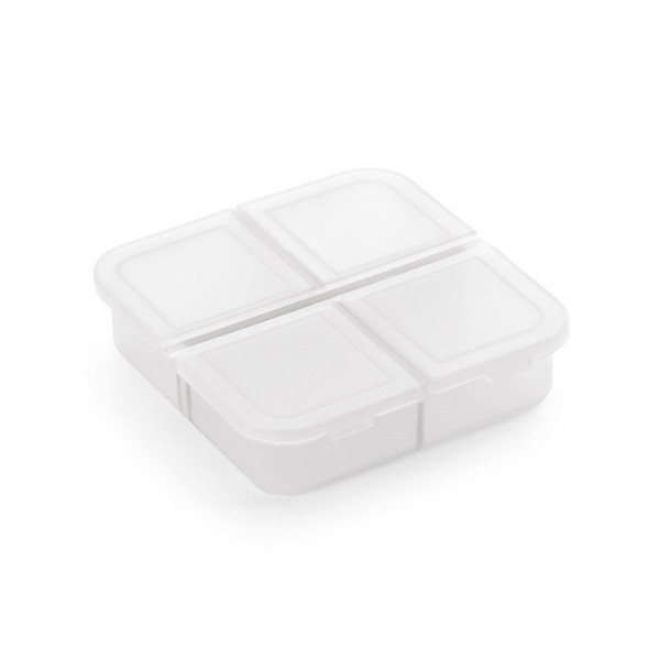 Pillendose mit 4 individuellen Fächern und Deckeln. 60 x 60 x 18 mm