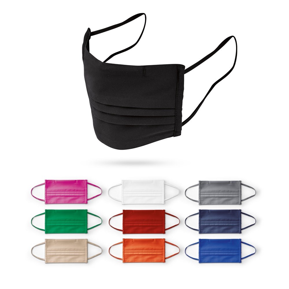 Wiederverwendbare Maske aus Baumwolle und Polyester mit Filter. Diese ist 3 lagig: 2 äußere und 1 inneren Filter aus PP Non Woven, mit Nasenklammer und 3 Frontalfalten zur besseren Anpassung des zu schützenden Gesichtsbereiches. Bequeme und atmungsaktive Maske, die eine Partikeleffizienz von PFE 90% und 50 Waschgänge gewährleistet. Geeignet für den allgemeinen Gebrauch, dient nicht für medizinische Zwecke. Empfehlungen zur Verwendung, Pflege und Reinigung finden Sie in der Informationsbroschüre. Lieferung erfolgt im Polybeutel. 175 x 98 mm