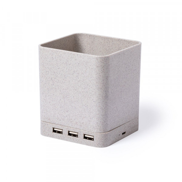 4 in 1 Multifunktionsstifthalter aus unserer Naturlinie. Hergestellt aus Weizenstroh, um die Verwendung natürlicher Rohstoffe zu fördern und Schadstoffemissionen zu reduzieren. Mit Stifthalter, Smartphone-Halter, drahtlosem Ladegerät und USB-Port (3xUSB 2.0) Funktionen. Kompatibel mit Smartphones, die mit drahtloser Ladetechnologie ausgestattet sind. Inklusive 1 Meter langem, weißem Mikro-USB-Kabel. Präsentiert in einer attraktiven Ökodesign-Box. Bedienungsanleitung in Spanisch und Englisch erhältlich.