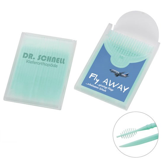 Zahnstocher mit Interdentalbürste, gefrostet glasklar/grün
